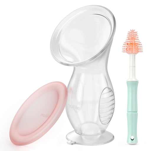 Nuliie Silicone Manual Breast Pump with Leak-Proof Lid & Suction Cup, 4oz/120ml BPA-Free, Wearable Hand Pump Breastmilk, Breast Milk Collectors for Breastfeeding Essentials, Includes Cleaning Brush