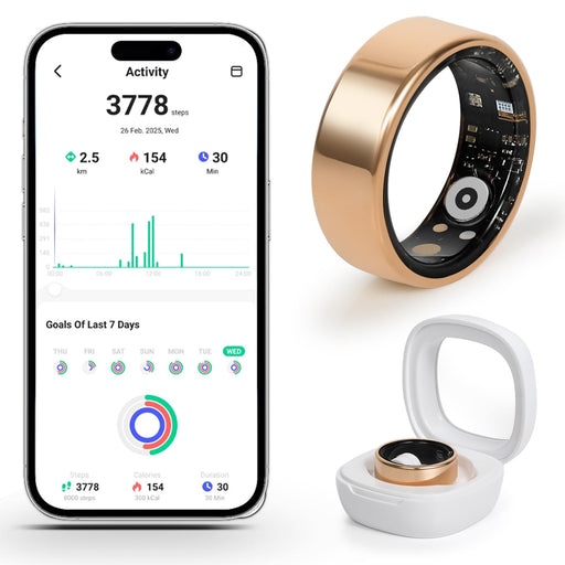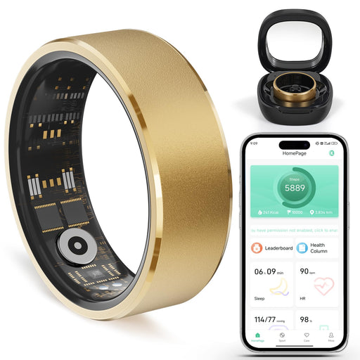 View full detailsSmart Health Ring for Women Men Fitness Tracker with Heart Rate, Blood Oxygen, Blood Pressure, Sleep Monitoring, Step Counting, IP68 Waterproof for iPhone and Android, No Subscription Fee, Gold 9