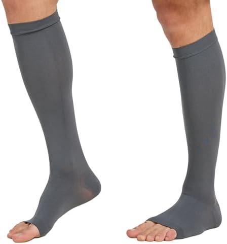 View full detailsTOFLY® Compression Stockings (Pair), Graduated Compression 20-30mmHg, Opaque, Unisex, Open Toe Knee High Compression Socks for Varicose Veins, Edema, Shin Splints, Nursing, Travel, Gray M