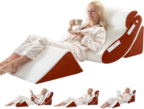 View full detailsOrthopedic Bed Wedge Pillow Set 4PCS – Memory Foam Pillows for Sleeping, Post Surgery, Back Pain, Sitting Up in Bed, Acid Reflux, Snoring, Leg & Arm Support, White Brown