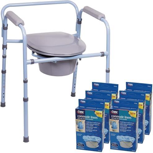 View full detailsCarex 3-in-1 Folding Bedside Commode with 42 Pack Commode Liners - Porta Potty for Adults - Portable Toilet for Camping, Supports Up to 300lbs, Bedside Commodes for Seniors and Commode Chair