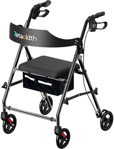 View full detailsFoldable Rollator Walker with Seat for Seniors, All-Terrain Wheels, 350lb Capacity, Reinforced Inner Metal Rod for Easy Folding & One-Hand Carry, Lightweight Rolling Walker - Black