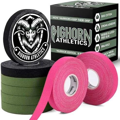 Bighorn Athletics Jiu Jitsu Finger Tape, Athletic Sports Tape For Injuries & Support: BJJ, Wrestling, Rock Climbing, Volleyball, Hands & Toes | 0.5-Inch x 45-feet, 8-Rolls, Military Green, Black, Pink