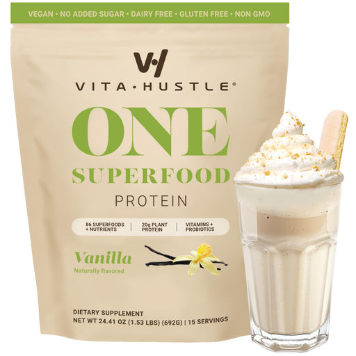 VitaHustle ONE Meal Replacement Shake - Plant Based Protein Powder by Kevin Hart - Vegan, Meal Replacement Powder with Superfoods, Vitamins, Adaptogens & Probiotics - Vanilla Flavor, 15 Servings
