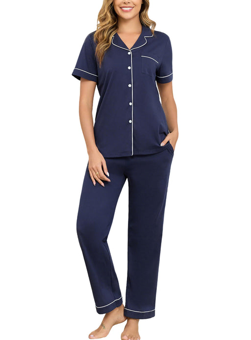 View full detailsCOLORFULLEAF Womens 100% Cotton Pajamas Set Short Sleeve Sleepwear Button Down Pjs Soft 2 Piece Lounge Set with Pockets S-XXL(Navy Blue, Large)