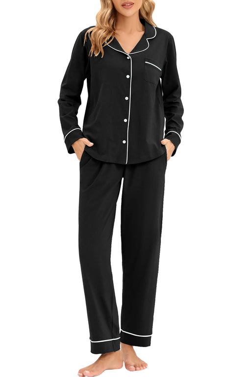 View full detailsLUBOT 100% Cotton Pajamas Set for Women PJ Set Soft Long Sleeve Button-Down Shirt PJ Two-piece Set Warm Night Suit Sleepwear Loungewear (Black, M)