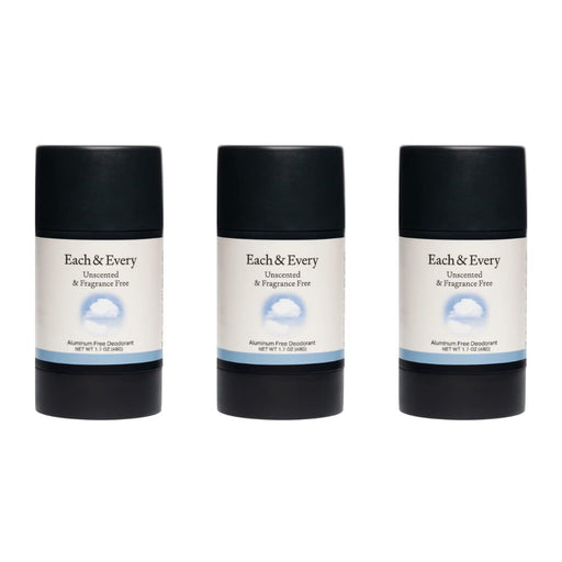 Each & Every All Natural Deodorant for Women & Men - Sensitive Skin, Plant-Based, Baking Soda & Aluminum-Free Deodorant - 24 Hr Odor Control - Unscented & Fragrance Free Travel Size (3 Pack, 1.7oz)