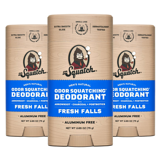Dr. Squatch Natural Deodorant for Men - Odor-Squatching Aluminum Free - Fresh Falls (2.65 oz, 3-Pack)