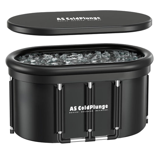 View full detailsAS ColdPlunge XXL Oval Ice Bath Tub for Cold Plunge, Portable Ice Pod with Lid, 148Gal Inflatable Ice Plunge Tub with 2 Drain Valves for Chiller Connection, Cold Therapy Recovery, Indoor Outdoor Use