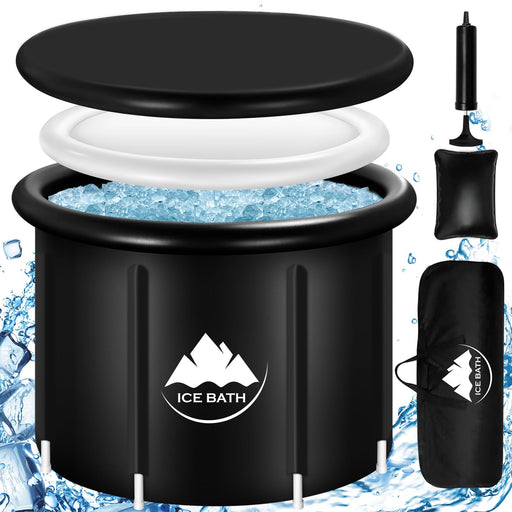 View full detailsIce Bath Tub for Athletes with Cover by Brisk Bear - Extra Large Cold Plunge Tub for Recovery - Inflatable Ice Bath Barrel Plunge Pool - Cold Plunge to Soothe Muscles - Black Ice Tub